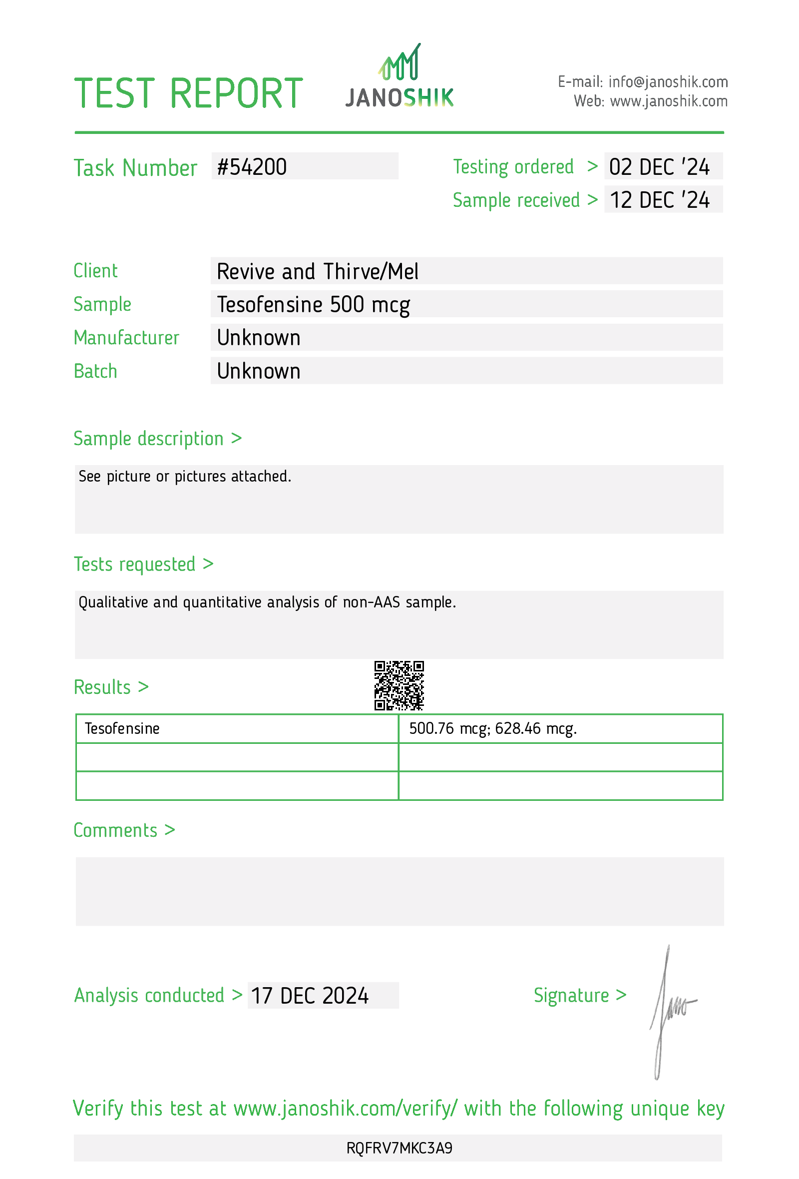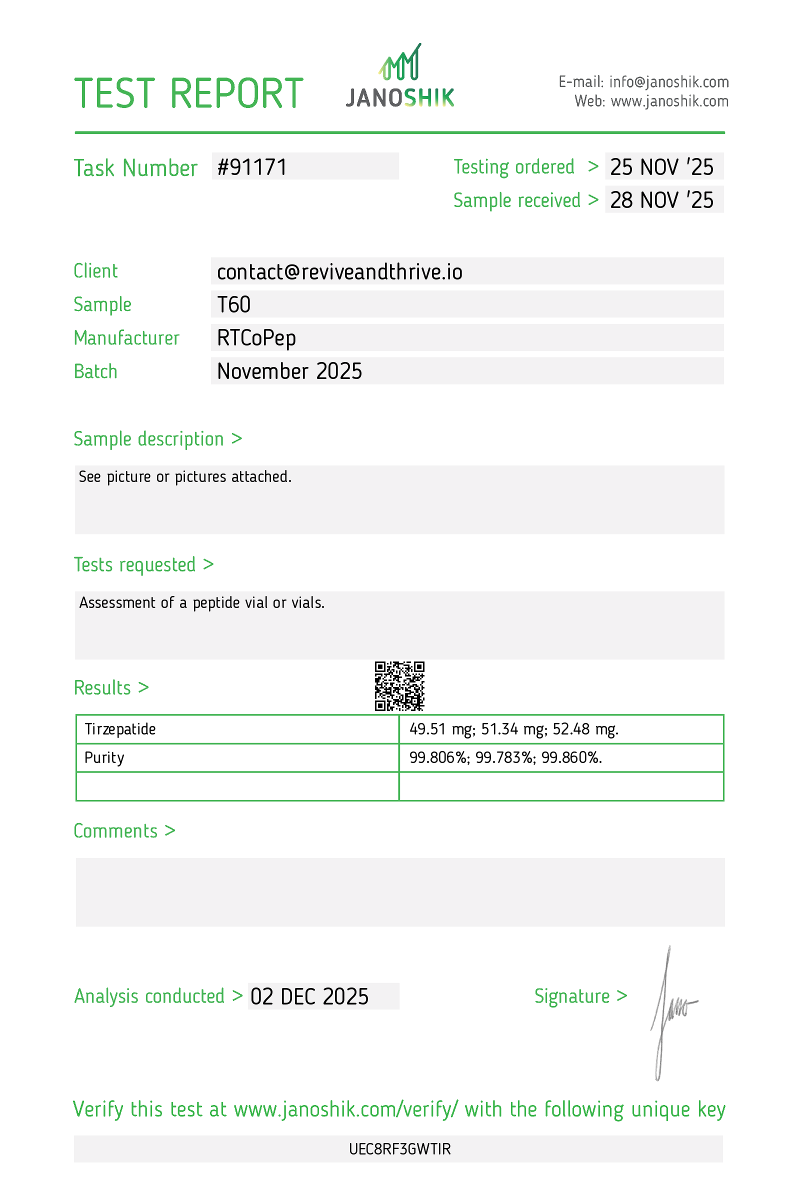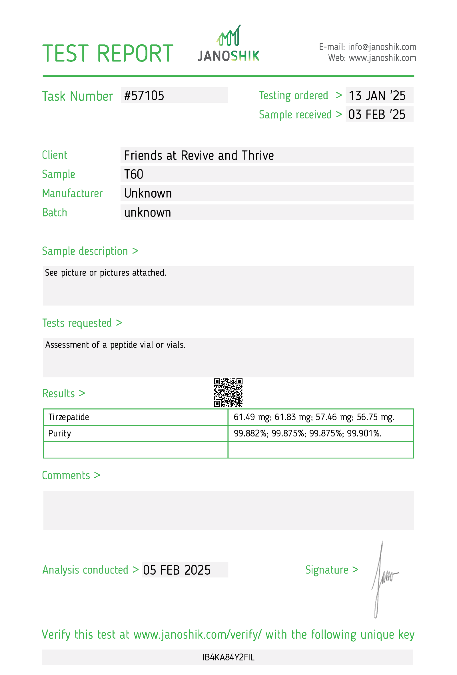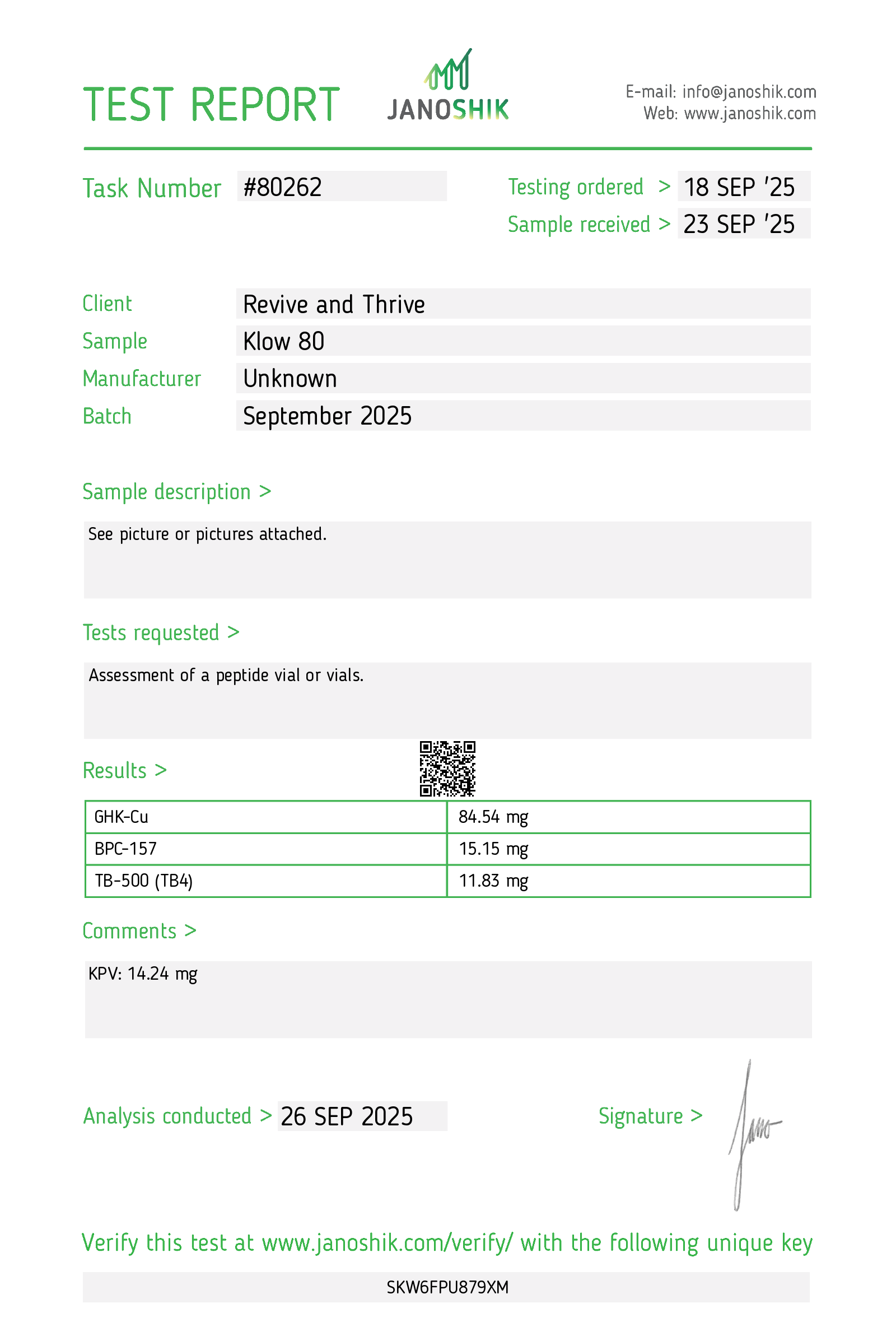 5 Amino 1 MQBac WaterBPC/KPV CapsulesGHK-CuIpamorelinKisspeptinKLOWKPVNAD+RetaSetmelanotideSLU-PP-332Snooze ZenSuper ShredderTB-500TesamorelinTesofensineTirz5 Amino 1 MQ5 Amino 1 MQ 30mg Red/Black Capsule5 Amino 1 MQ 50mg Red/Black Capsule↑ Back to topBac WaterBac Water↑ Back to topBPC/KPV CapsulesBPC 500mcg/KPV 500mcg Red CapsulesBPC 500mcg/KPV 500mcg Blue & White Capsules↑ Back to topGHK-CuGHK-Cu 50 – 11/6/2024GHK-Cu 50 – 10/20/2024↑ Back to topIpamorelinIpamorelin 10mg Black Cap – 2/2025↑ Back to topKisspeptinKisspeptin 10 White Cap – 04/2025↑ Back to topKLOWKLOW 80 White Cap – September 2025↑ Back to topKPVKPV 30 Blue Cap – 11/2025KPV 5mg Green Cap – June 2025KPV 10 Purple Cap – 2/2/2025KPV 10 Purple Cap – 1/2/2025↑ Back to topNAD+NAD+ 500mg Clear Cap – Aug. 2025↑ Back to topRetaR20 Transparent Pink Cap – October 2025R60 Pink Cap – June 2025R36 Pink Cap – 3/2025↑ Back to topSetmelanotideSetmelanotide 10mg Green Cap – June 2025Setmelanotide 10mg Red Cap – 12/2024↑ Back to topSLU-PP-332SLU-PP-332 Red Capsule 20mg – 1/2025SLU-PP-332 Blue Capsule 1mg – 1/2025↑ Back to topSnooze ZenSnooze Zen Teal CapSnooze Zen – 2/2025↑ Back to topSuper ShredderSuper Shredder – 1/2025↑ Back to topTB-500TB-500 10mg Red Cap – 2/2/2025TB-500 10mg Red Cap – 1/2/2025↑ Back to topTesamorelinTesamorelin 10mg Blue Cap – 2/2025↑ Back to topTesofensineTesofensine 500 mcg↑ Back to topTirzT50 Pink Cap – November 2025T30 Teal Cap – September 2025T100 – July 2025T60 Blue CapT30 Black Cap – 4/28/2025T60 Purple Cap – 4/10/2025T60 Purple Cap – 3/4/2025T60 Purple Cap – 2/15/2025T60 Purple Cap – 1/14/2025T30 Black Cap – 1/2/2025T60 Orange Cap – 12/2024↑ Back to top